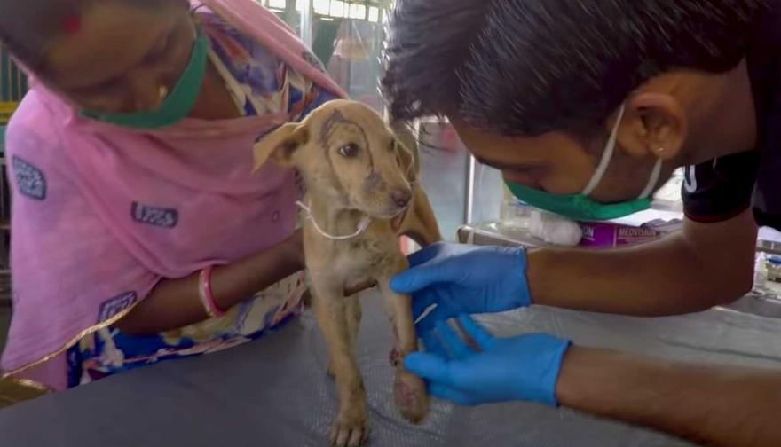 Οι διασώστες της Animal Aid Unlimited ξεκίνησαν να βοηθήσουν ένα κουτάβι που έμεινε ακίνητο με τραύμα εξαιτίας ενός σοβαρά τραυματισμένου ποδιού.