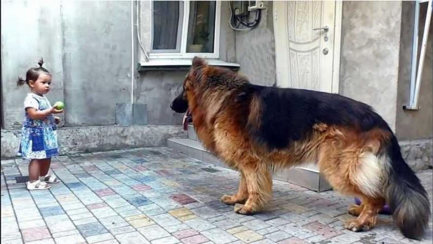 Ο πατέρας για να προφυλάξει και το παιδί του αλλά και τον σκύλο πήρε μια σανίδα και άρχισε να τα κυνηγάει. Τα σκυλιά φοβήθηκαν κι έφυγαν γρήγορα. Κι έτσι το κοριτσάκι μετά από αυτό έτρεξε κλαμένο κι αγκάλιασε τον ποιμενικό και τον φώναζε με το όνομα Ντολφ.