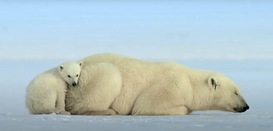 Βιντεοσκοπούσαν μια μαμά πολική αρκούδα με τα 2 μικρά της, όταν η μαμά άρχισε να κυνηγάει φώκιες καθώς ήταν πολύ πεινασμένη! Η μαμά ήλπιζε να μάθει στα μικρά πώς να κυνηγούν, αλλά το ένα από αυτά τρόμαξε από μια μικρή φώκια!