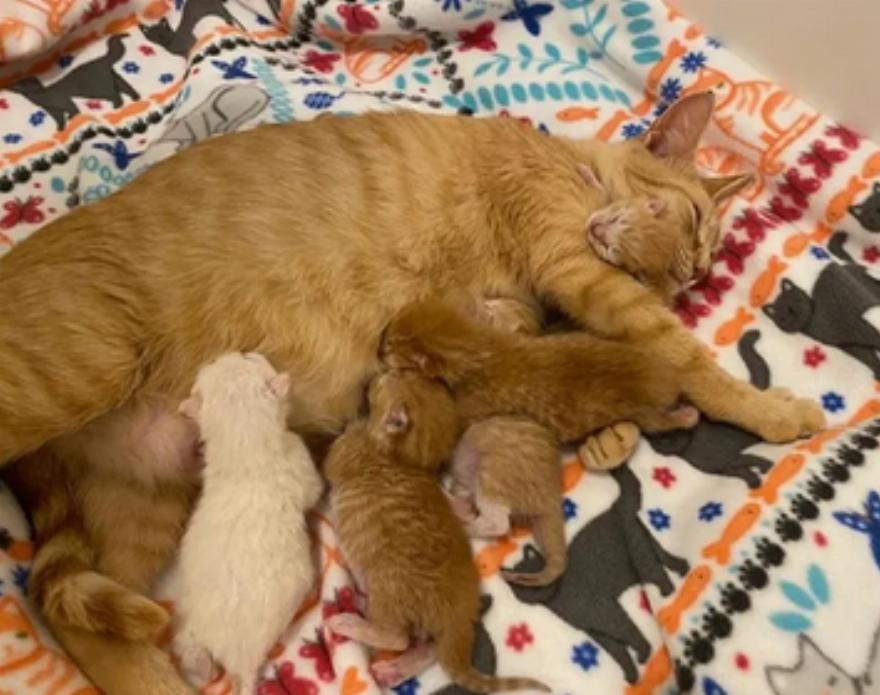 Η Nakoma, πορτοκαλί γάτα, είναι τόσο ευτυχισμένη που τα γατάκια της θα μεγαλώσουν σε ένα σπίτι και δεν θα χρειαστεί να περάσουν ούτε μια μέρα στο δρόμο.