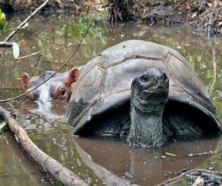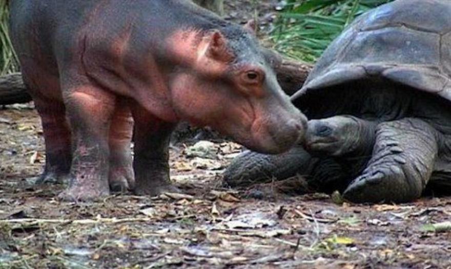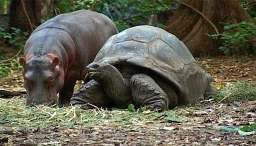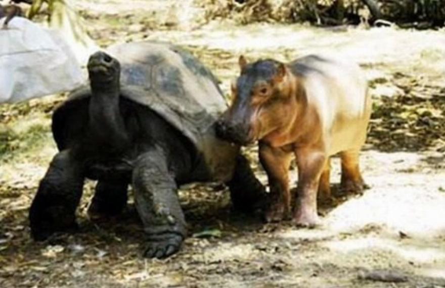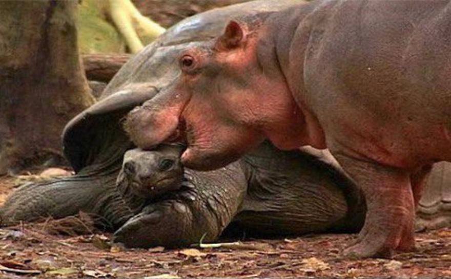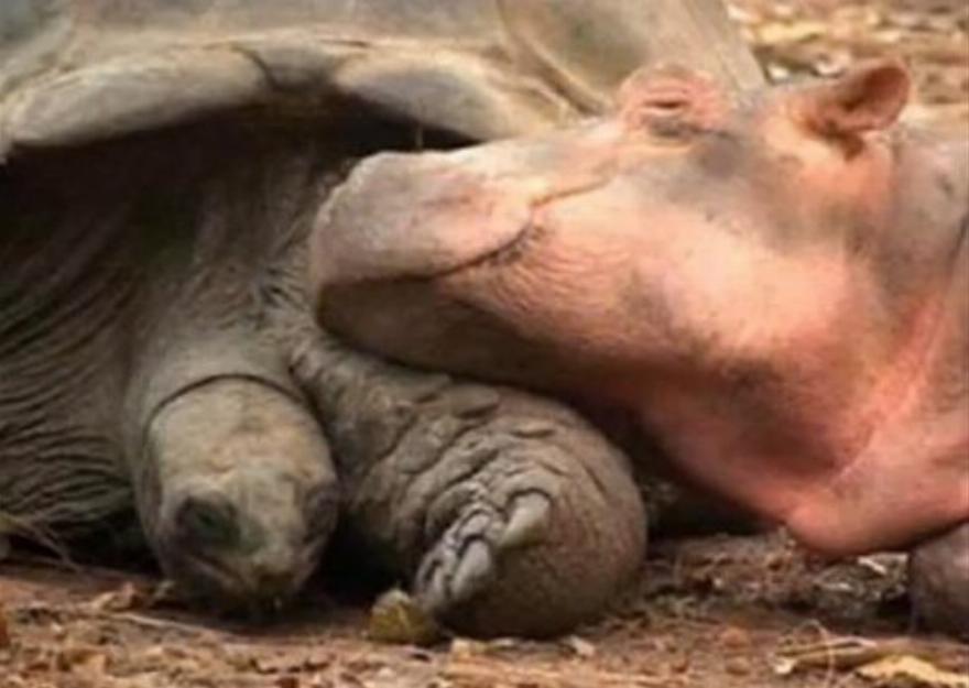 Είναι απίστευτο! Ένας ιπποπόταμος ηλικίας μικρότερης του ενός έτους υιοθέτησε μια αρσενική χελώνα, ηλικίας περίπου ενός αιώνα, και η χελώνα φαίνεται να είναι πολύ ευχαριστημένη με το να είναι “μητέρα””, δήλωσε στο AFP η οικολόγος Paula Kahumbu. Η Paula εξήγησε ότι οι ιπποπόταμοι είναι από τη φύση τους κοινωνικά ζώα και τους αρέσει να μένουν με τις μητέρες τους για περίπου 4 χρόνια.