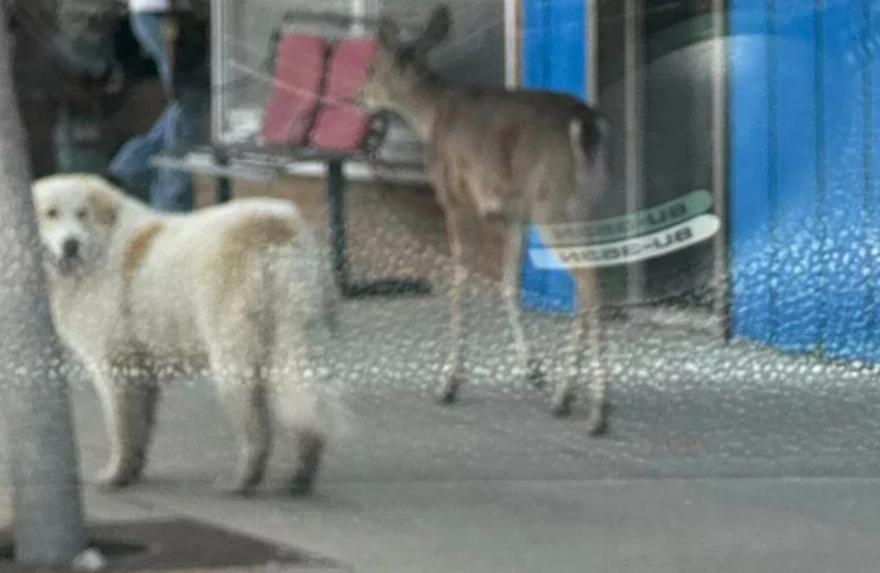 Σε δύο λήψεις τα ζώα περπατούν σε ένα πεζοδρόμιο μπροστά από ένα μπλε κτίριο. Σε μία από τις φωτογραφίες, ένας αστυνομικός παρακολουθεί τους δύο τριχωτούς φίλους λίγα μέτρα μακριά. Στην τελευταία εικόνα που κοινοποιήθηκε στην ανάρτηση, ο σκύλος και το ελάφι βρίσκονται σε ένα γκαζόν, με τον σκύλο να είναι ξαπλωμένος στο γρασίδι και το ελάφι να στέκεται σε κοντινή απόσταση.