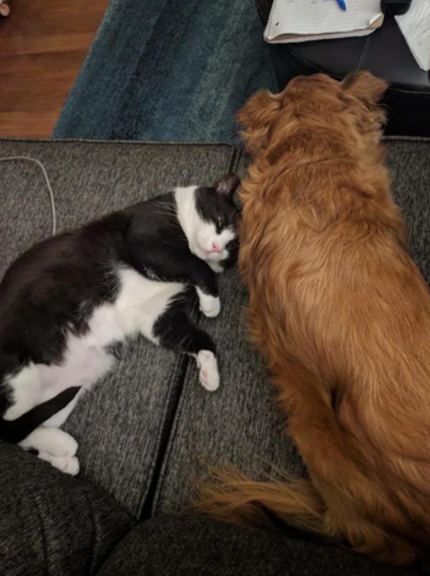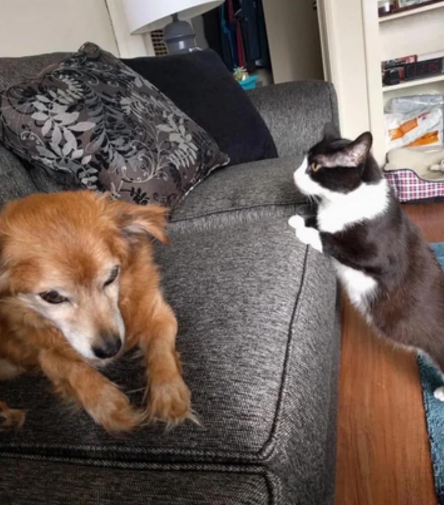 Η γάτα σμόκιν έκανε τον ηλικιωμένο σκύλο να νιώσει ξανά σαν κουτάβι. Οι δύο καλύτεροι φίλοι δεν είναι ποτέ μακριά ο ένας από τον άλλο.