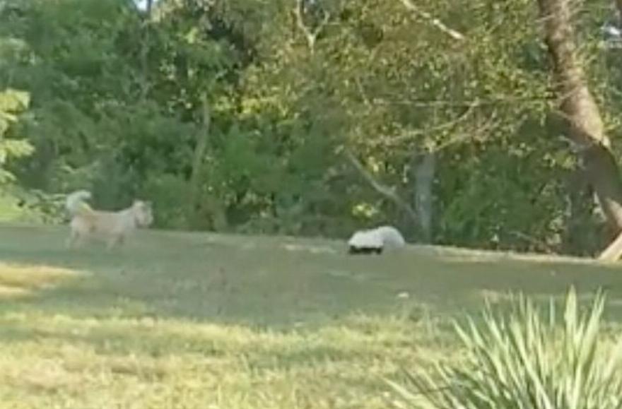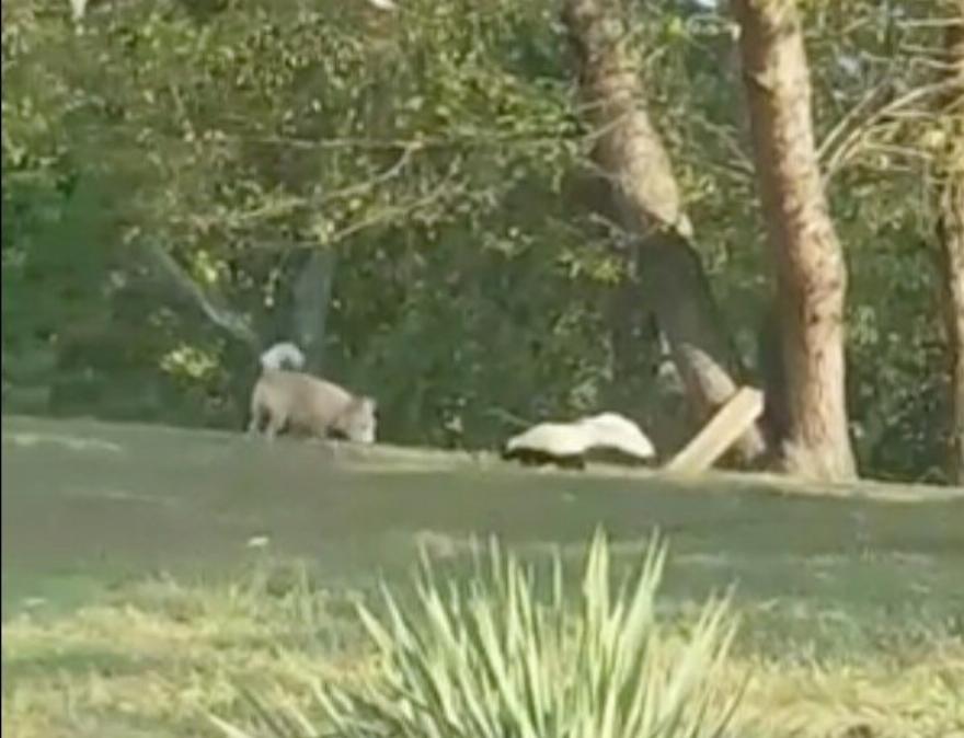 So….Was woke up this morning to my wife telling me that Oliver, our dog, got out and was playing with a skunk!!! I would’ve never believed it until I went out to check the hole he got out through and he was playing with the skunk AGAIN!! Luckily the neighbors got a video!