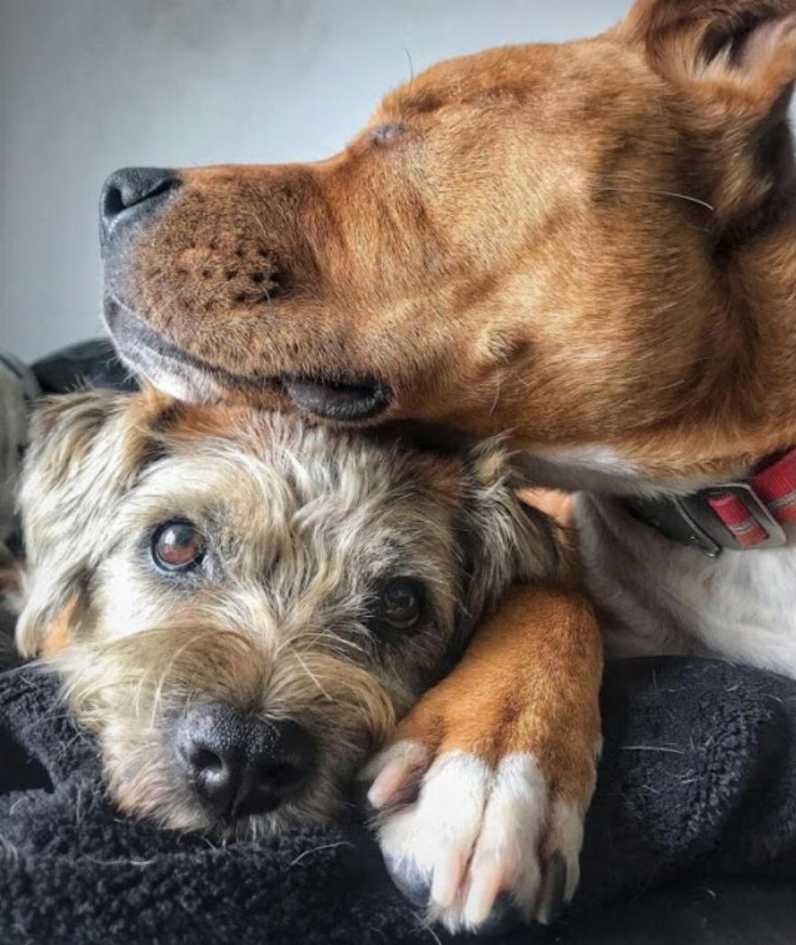 Καθώς εργαζόταν εθελοντικά στο τοπικό κέντρο διάσωσης ζώων, η Jess Martin ερωτεύτηκε ένα αξιολάτρευτο Staffordshire με το όνομα Amos που γεννήθηκε τυφλό. Όταν άκουσε ότι είχε πρόβλημα να βρει την παντοτινή του οικογένεια, άνοιξε αμέσως το σπίτι της στο κουτάβι. Αυτό που αρχικά ξεκίνησε ως προσωρινή φιλοξενία για τον Amos, μετατράπηκε σε υιοθεσία, που θα άλλαζε για πάντα τη ζωή του.
