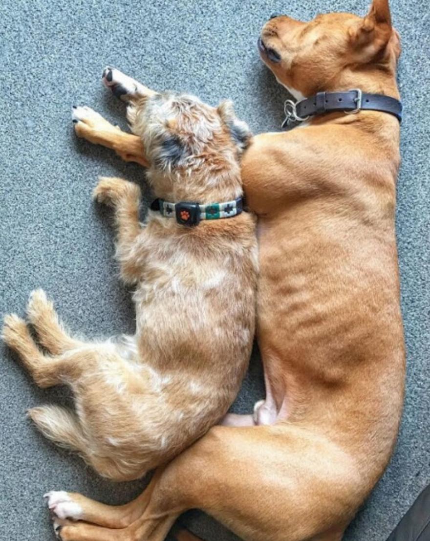Η Jess αρχικά ανησυχούσε για το πώς θα αντιδρούσε ο Toby, το 9χρονο τεριέ της, στον ανάδοχο αδελφό του. Ο Toby ήταν ο καλύτερος φίλος της Jess. Έχουν ζήσει μερικές απίστευτες περιπέτειες μαζί και έχουν δημιουργήσει έναν υπέροχο δεσμό, οπότε η σκέψη να προστεθεί στη μικρή τους οικογένεια ακουγόταν λίγο τρομακτική. Μετά από λίγες μέρες αβεβαιότητας μεταξύ του Toby και του Amos, η φιλία τους άνθισε.