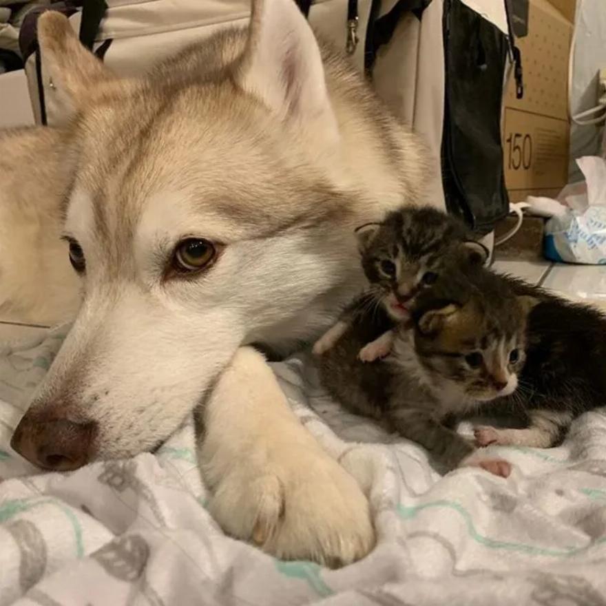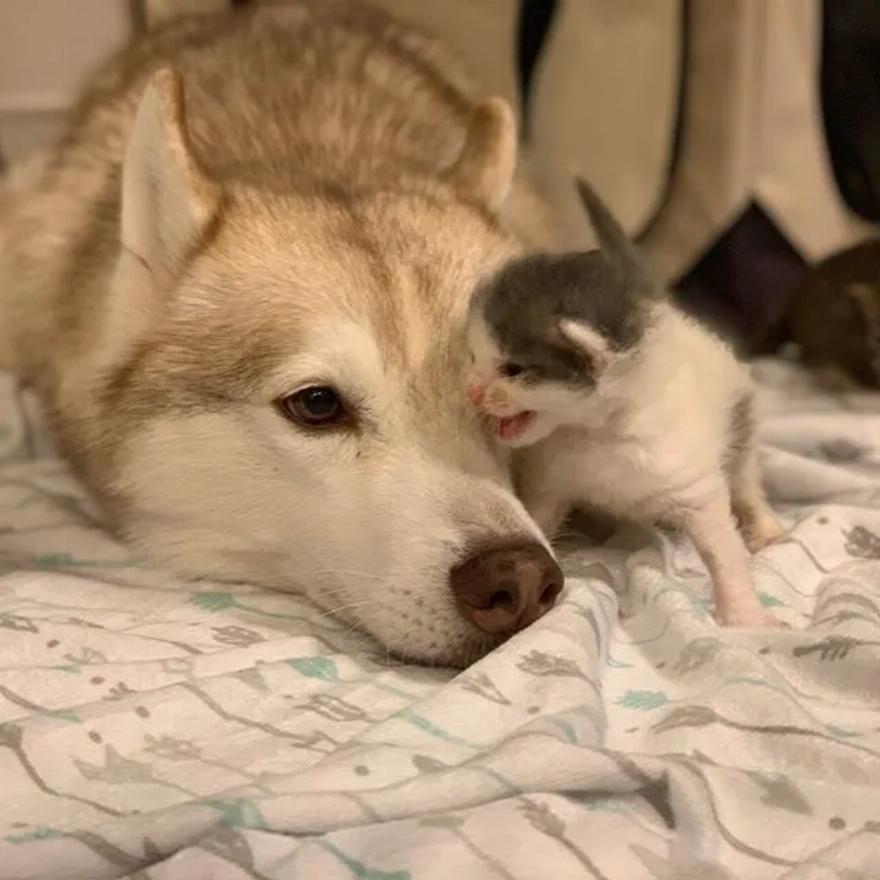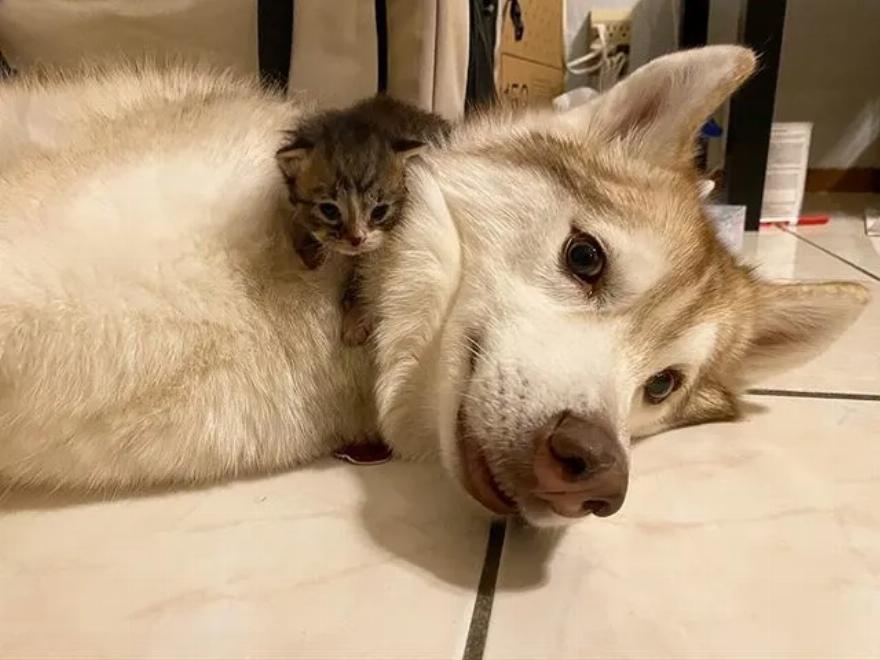 Το γλυκό Husky βρίσκεται σε απόλυτη ευτυχία κάθε φορά που βρίσκεται κοντά σε γατάκια. Κάθε φορά που ακούει τα νιαουρίσματα τους, έρχεται τρέχοντας για να βεβαιωθεί ότι είναι καλά.