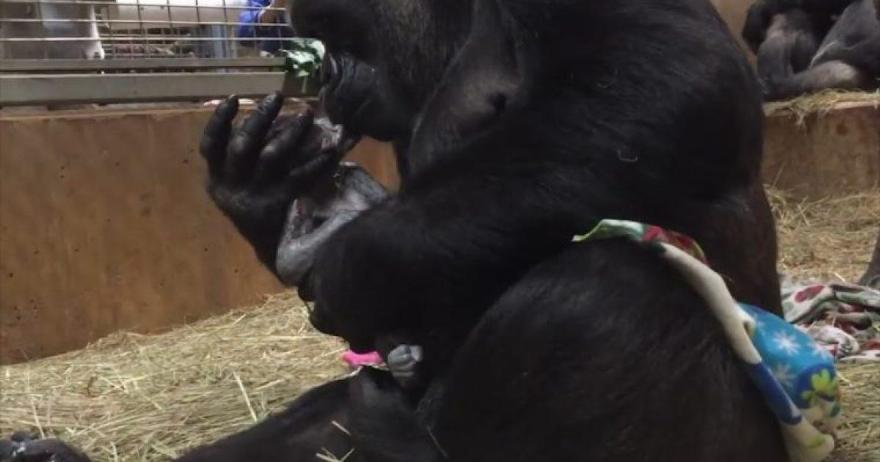 Γέννησε έναν αρσενικό γορίλα και αυτή η σημαντική στιγμή καταγράφηκε σε βίντεο, καθώς δεν είναι μόνο η πρώτη γέννηση γορίλα στον συγκεκριμένο ζωολογικό κήπο, αλλά και ένα θετικό βήμα για το είδος που απειλείται με εξαφάνιση.
