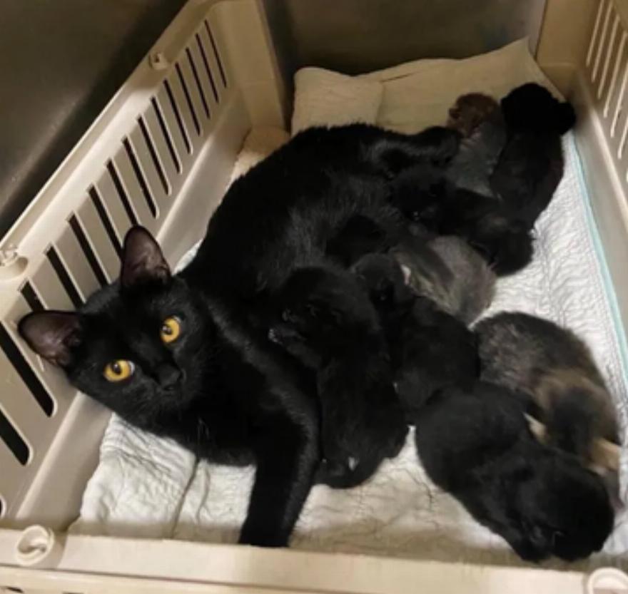 Λίγο καιρό μετά την άφιξή της, η Queenie έφερε οκτώ μικροσκοπικά γατάκια σε αυτόν τον κόσμο, μακριά από τα στοιχεία της υπαίθρου. Η φιλική γάτα άρχισε αμέσως να φροντίζει τα απαιτητικά μωρά της και να καλύπτει κάθε τους ανάγκη.