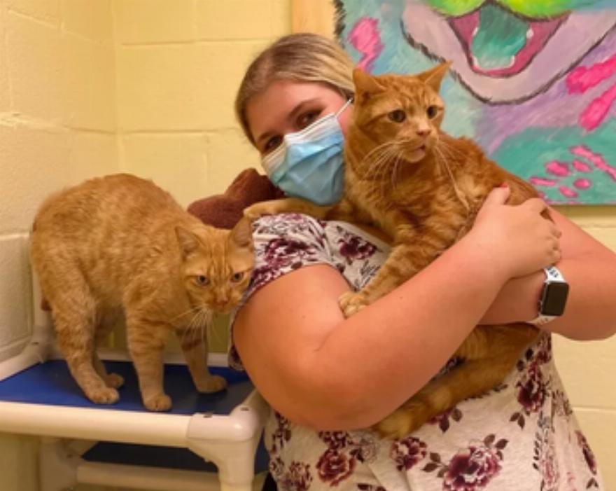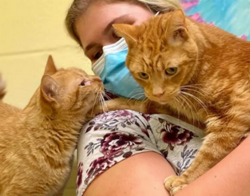 Μια εθελόντρια της AACAC ήρθε να τα επισκεφτεί στο δωμάτιο των γατών και τα αδέρφια την υποδέχτηκαν αμέσως. “Ο OJ και ο Jack είναι απίστευτα γλυκοί. Ο Jack πήδηξε στην αγκαλιά μου. Ο OJ ήταν στον πύργο αλλά ήθελε να τον χαϊδέψουν. Έγειρε στο χέρι μου και γουργούριζε. Τι φοβερό ζευγάρι”, μοιράστηκε η εθελόντρια.