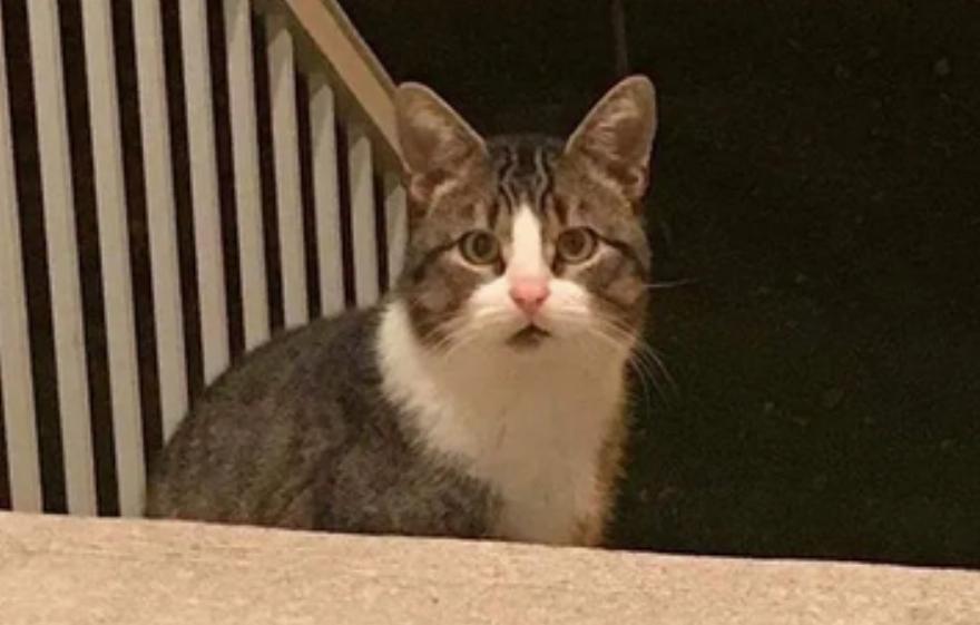 Ο γάτος tabby έφτασε στο κατάλληλο σπίτι για να ζητήσει βοήθεια και τώρα ζει τη ζωή μιας οικόσιτης γάτας.