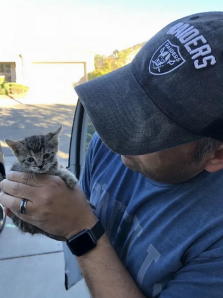Ο σύζυγος της Nikki βρήκε το μικρό tabby σε έναν σωρό από σκουπίδια ανάμεσα σε τρεις άλλες νεκρές γάτες, αλλά δεν μπορούσε να την προσεγγίσει. “Ο σύζυγός μου “σερφάριζε” με την κοιλιά του πάνω σε περίπου εννέα μέτρα σκουπιδιών. Μετά από ώρες προσπαθειών, κατάφερε να φτάσει και να την αρπάξει”, δήλωσε η Nikki.