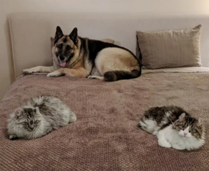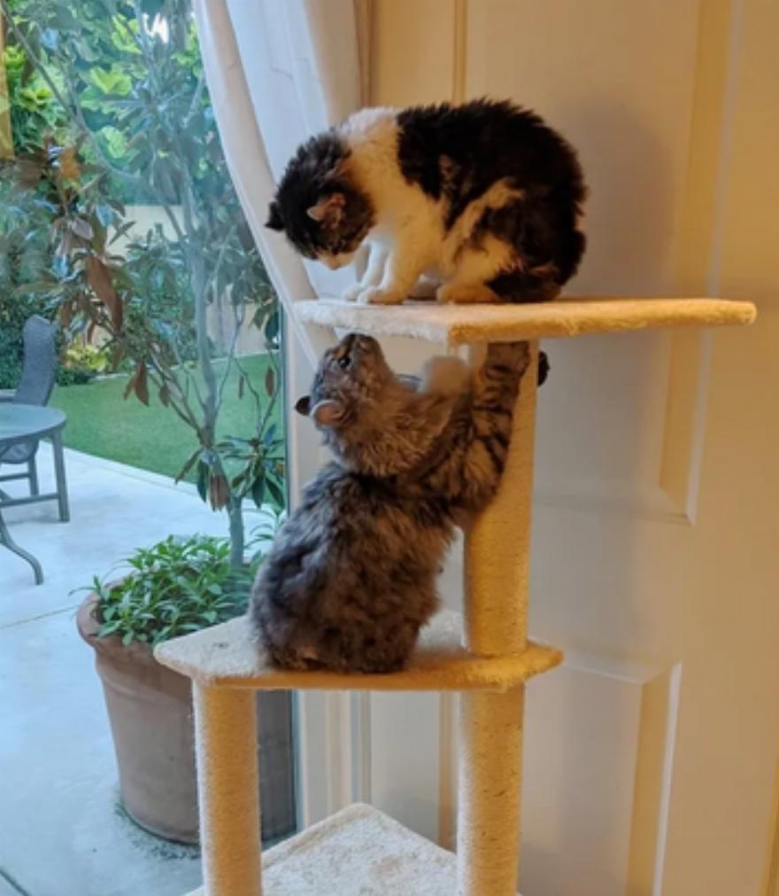 Την ακολουθούσε σε όλο το σπίτι και σκαρφάλωνε στο γατόδεντρο όταν εκείνη βρισκόταν στην κορυφή του. “Η Amber δέχτηκε τον αδελφό της και τον σκύλο που μένει εδώ μέσα σε μια μέρα”, δήλωσε η Denah Hoard, ανάδοχη ιδιοκτήτρια.