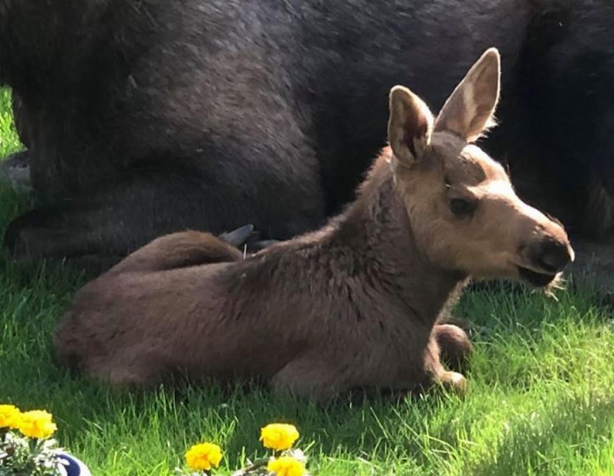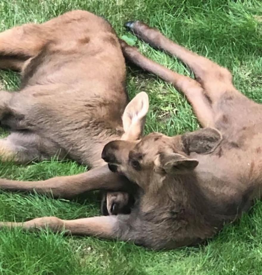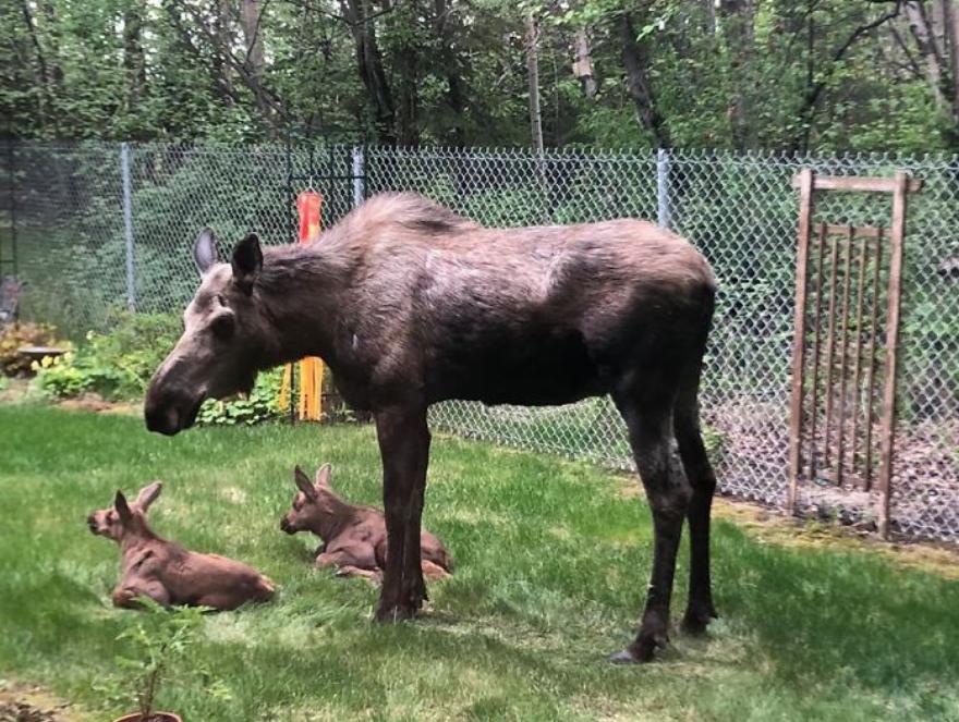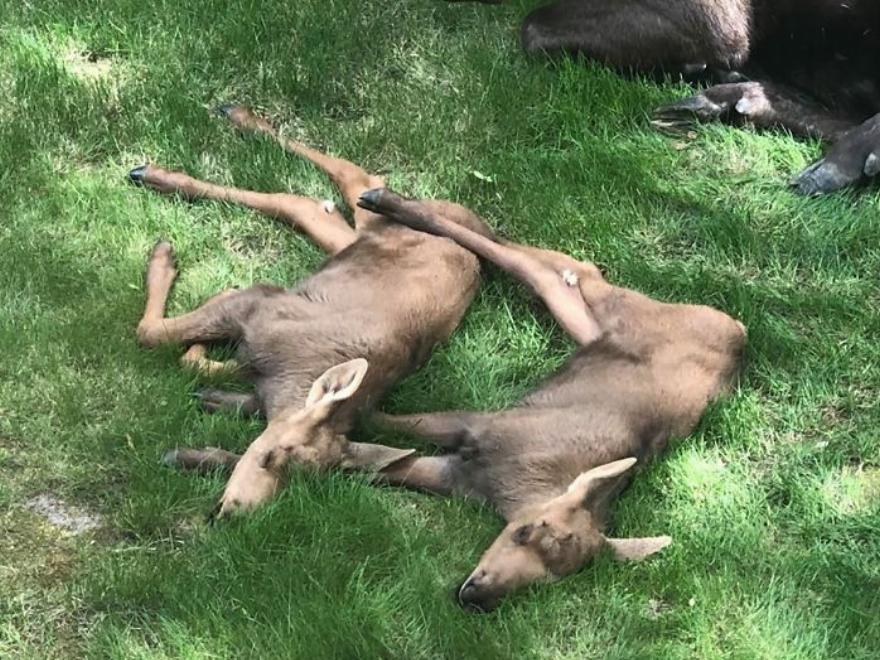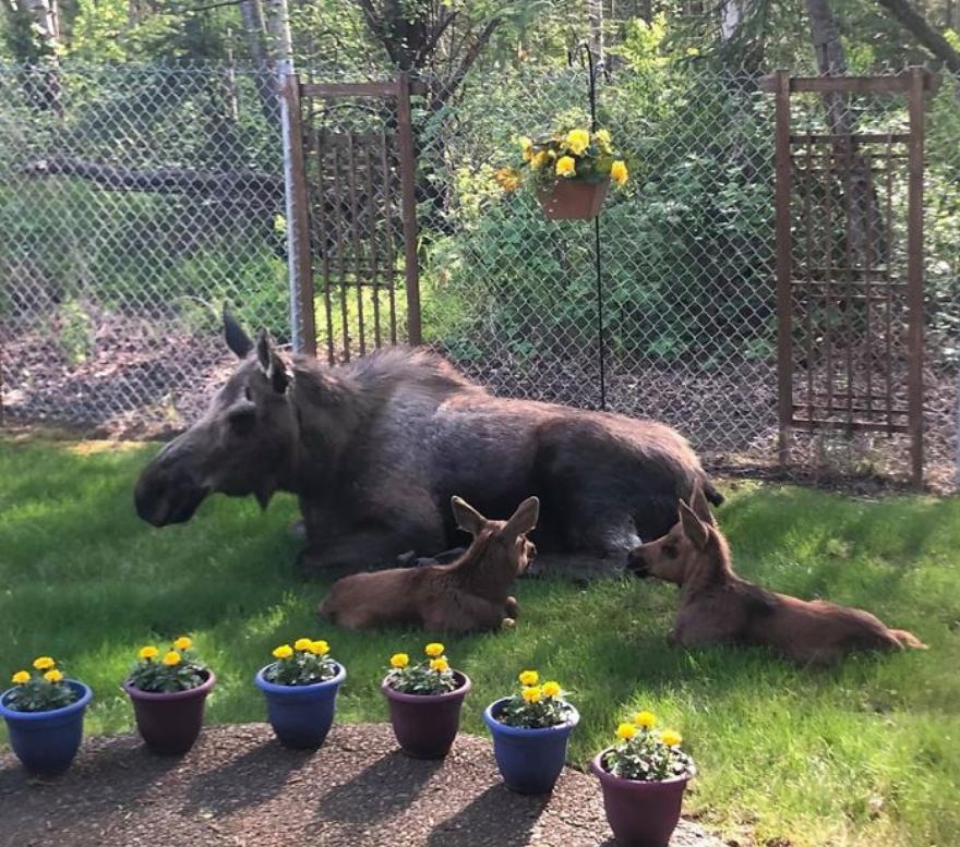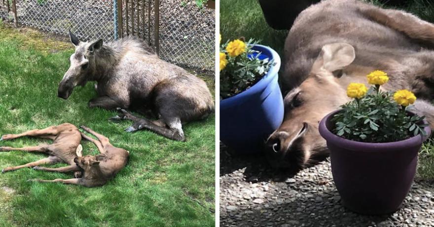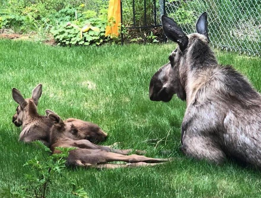 Μια μητέρα τάρανδος και τα δύο μωρά της μπήκαν κρυφά στην αυλή του Rydstrom και γρήγορα βολεύτηκαν.