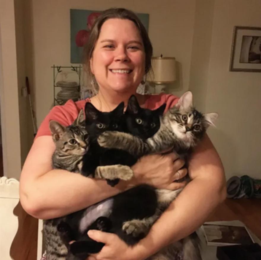 “Γύρισα σπίτι άρρωστη από τη δουλειά ένα απόγευμα και τα τέσσερα γατάκια ήταν ξαπλωμένα στο κρεβάτι μαζί μου. Ο Leo ήταν τόσο χαριτωμένος, καθώς είναι πολύ τρυφερός όταν νυστάζει και θα σου γλύφει το πρόσωπο”, είπε η Sarah.