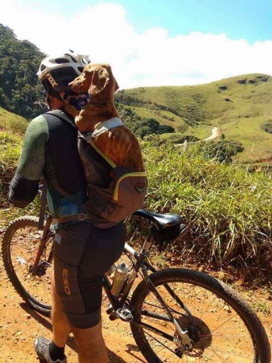 Από εκείνη τη στιγμή, το κουτάβι ταξιδεύει σε όλη τη χώρα με τον ιδιοκτήτη του, έναν νεαρό άνδρα που ασκεί ποδηλασία βουνού.