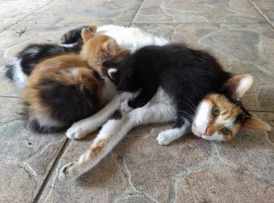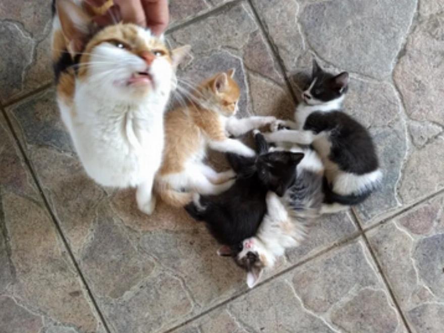 Μόλις τα γατάκια είναι αρκετά μεγάλα, θα στειρωθούν. Η μαμά γάτα έχει ήδη διεκδικήσει το σπίτι ως δικό της.