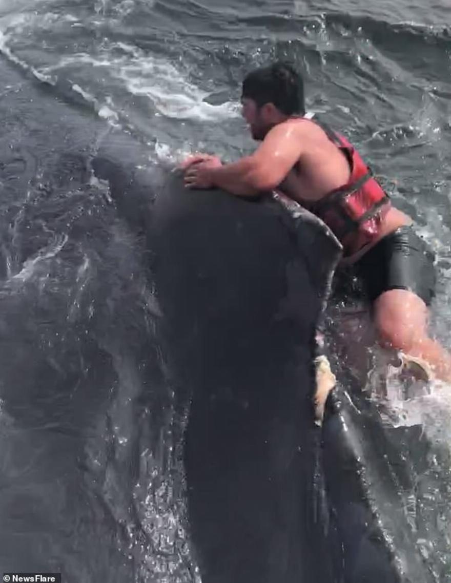 Ένας ψαράς κατάφερε να διασώσει μια φάλαινα πηδώντας πάνω στην πλάτη του τεράστιου θηλαστικού.
