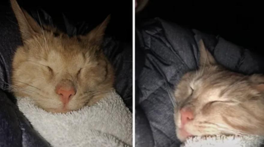 Ο κοκκινομάλλης γάτος ήταν τόσο ευχαριστημένος, γνωρίζοντας ότι ήταν σε καλά χέρια. Η Stacey τον αγκάλιασε καθώς αποκοιμήθηκε στην αγκαλιά της και κοιμόταν σε όλη τη διαδρομή μέχρι το σπίτι.