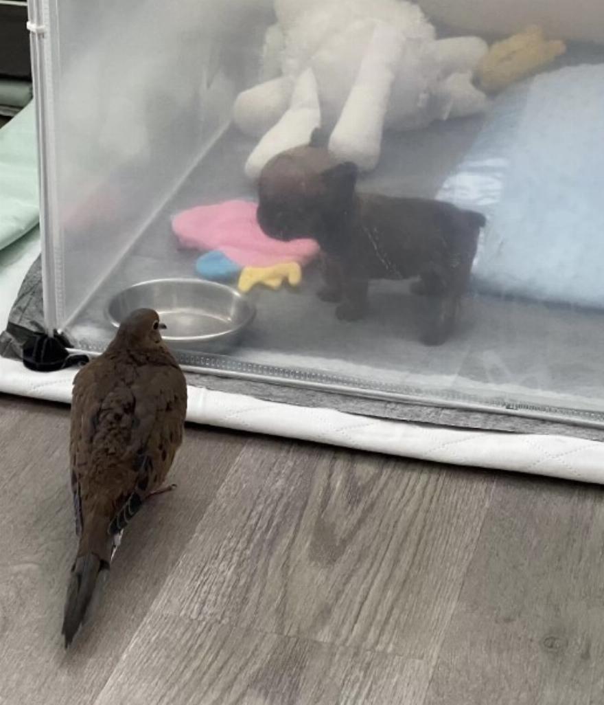 “Η Lovey πετάει στο σπίτι όλη μέρα και απλά παρατήρησα ότι κάθε φορά που άφηνα το κουτάβι κάτω, πετούσε αμέσως προς το μέρος του”, είπε η Rogers. “Είναι σαν, ‘Μήπως νομίζει ότι είναι ένα άλλο πουλί;’ Επειδή έχει περίπου το ίδιο μέγεθος με αυτήν, έχουν το ίδιο χρώμα και δεν αλληλεπιδρά έτσι με κανένα από τα άλλα σκυλιά στο σπίτι”.
