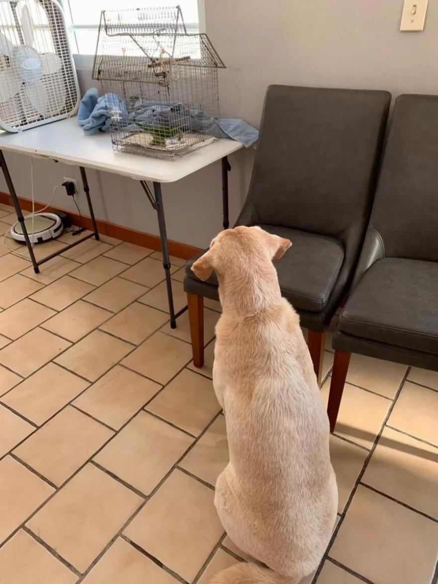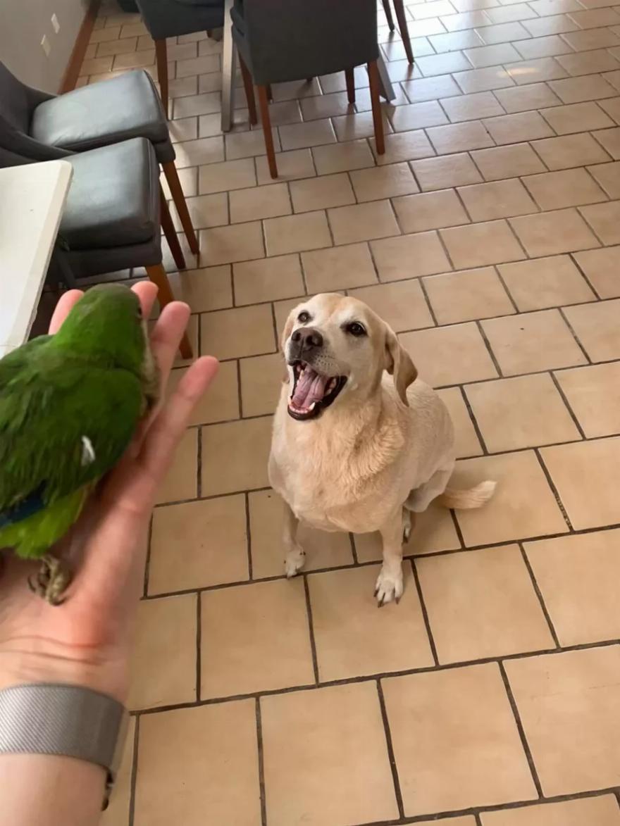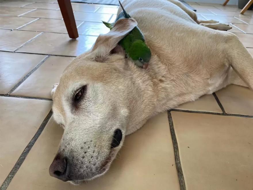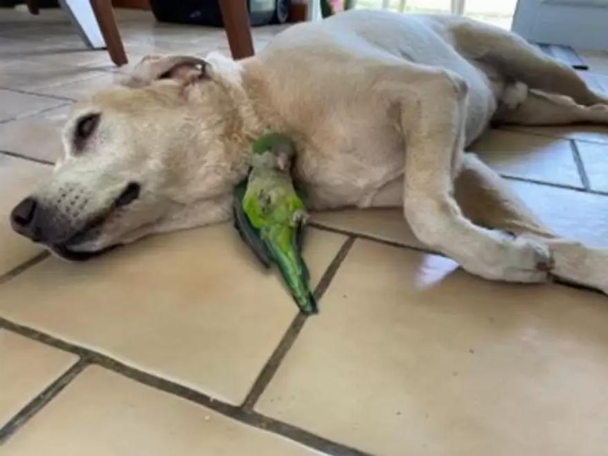 Και με αυτό, έχει ανθίσει μια όμορφη φιλία μεταξύ πουλιού και σκύλου.