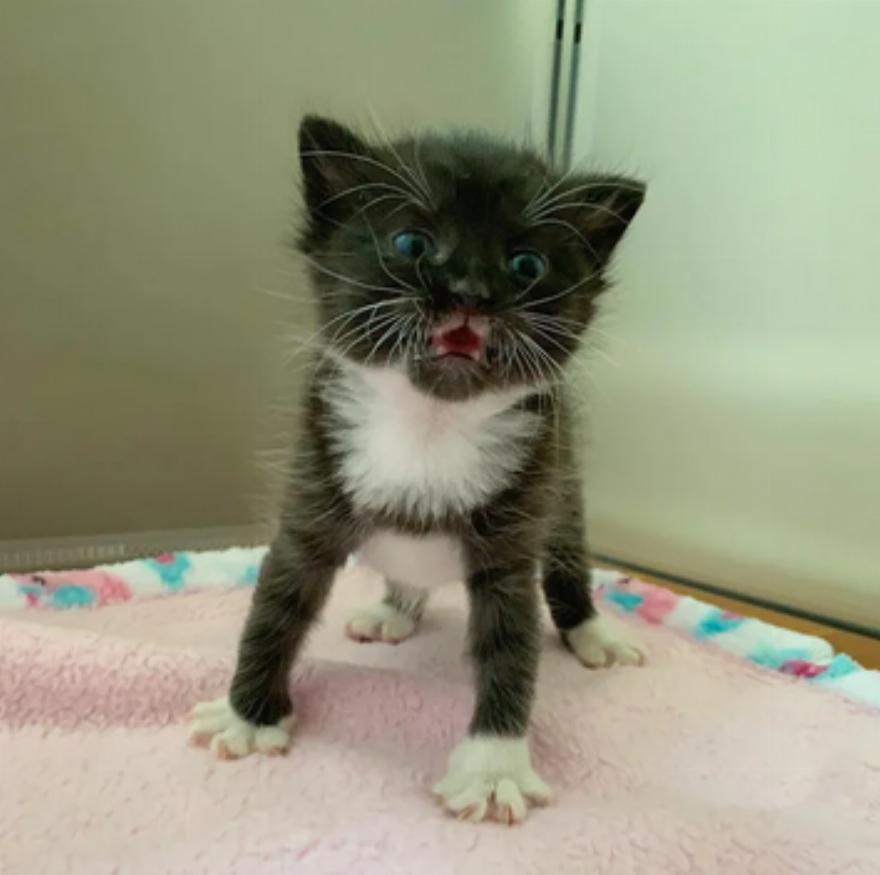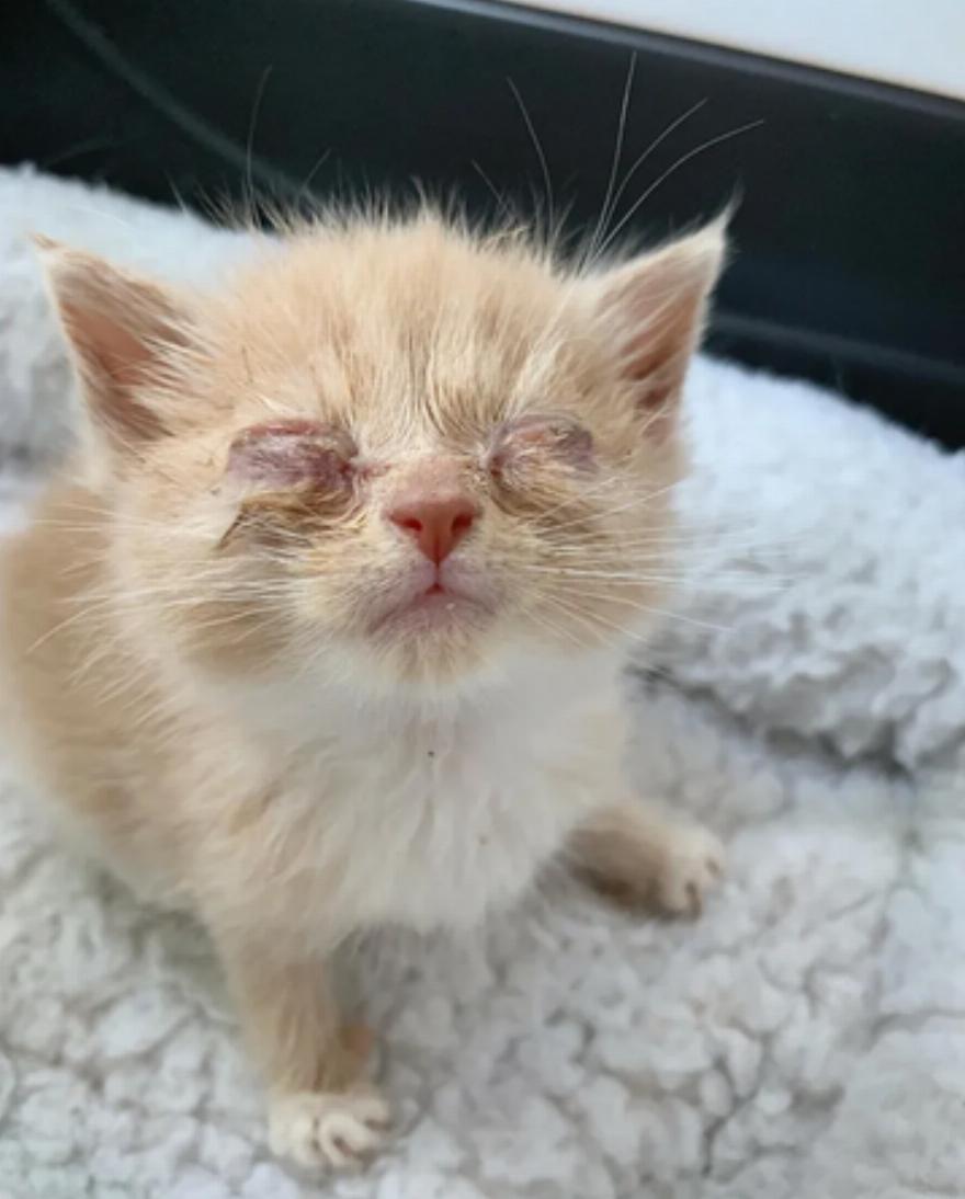 Το γατάκι ήταν σε άσχημη κατάσταση και δεν μπορούσε να ανοίξει τα μάτια του. “Μας ρώτησαν αν μπορούσαμε να βοηθήσουμε αυτό το “άρρωστο γατάκι που βρέθηκε”, πώς θα μπορούσαμε να αρνηθούμε; Μαζευτήκαμε γύρω του και του δώσαμε κάθε φροντίδας που μπορούσαμε”, μοιράστηκε η Sarah Kelly, ιδρύτρια της διάσωσης.