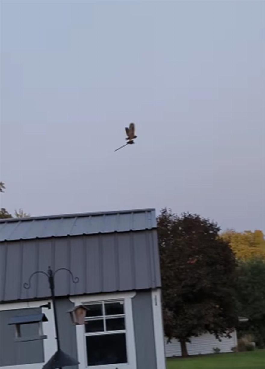 Η απώλεια ενός παιδιού είναι το κέρδος μιας μικρού κουκουβάγιας. Ο Eric Lind εντόπισε ένα ασυνήθιστο θέαμα σε μια γειτονιά του Ιλινόις – μια κουκουβάγια που πετούσε με ένα παιδικό παιχνίδι χόμπι-άλογο!