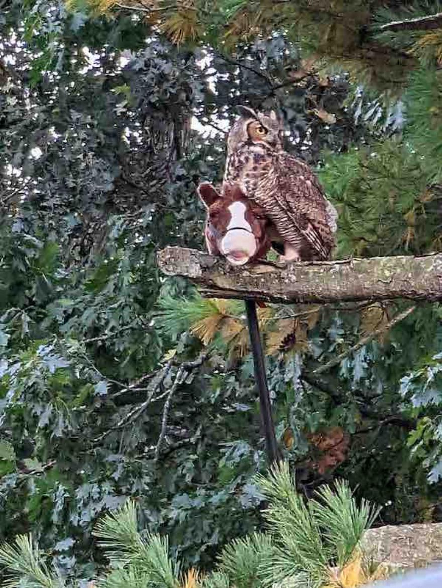 “Η νεαρή κουκουβάγια της γειτονιάς έχει κλέψει αυτό το ραβδωτό άλογο και πετάει με αυτό στη γειτονιά”, έγραψε ο Eric Lind στο Facebook. Ειδοποίησε τους γείτονές του: “Γείτονες του Hilldale/Forest Park/Ridge lane… αν το παιδί σας χάσει το ραβδωτό άλογό του, θα πρέπει να μιλήσετε με την κουκουβάγια!”!