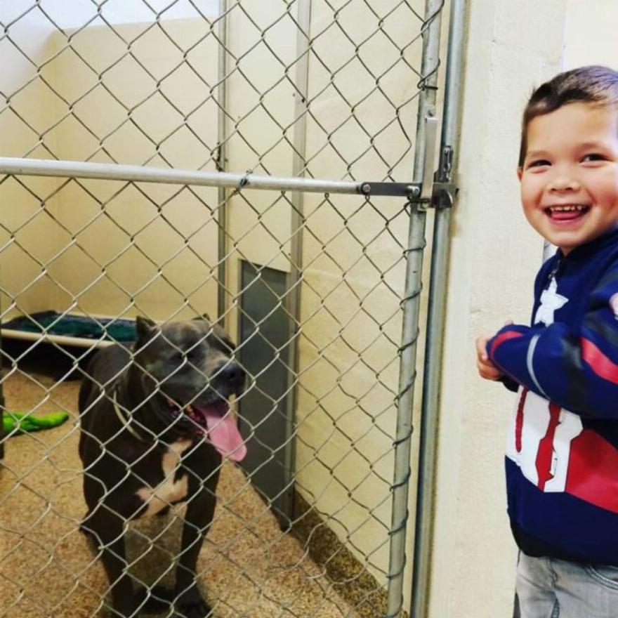 Ο Tank, ένα σκούρο γκρι πιτ μπουλ, ήταν μία από τις δύο επιλογές του Jaxton για χορηγία. Το μικρό αγόρι ήταν τόσο ενθουσιασμένο που είδε τον Tank που έτρεξε μέχρι την είσοδο του κλουβιού του.