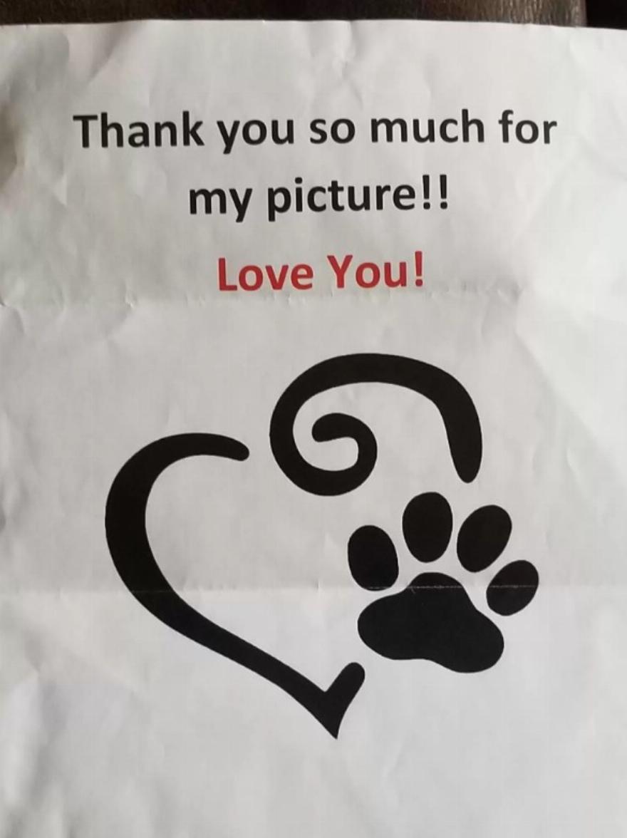 Η ζωγραφιά ήταν ένα πορτρέτο του αγαπημένου της κουταβιού, αλλά το μήνυμα προς την Kendal ήταν σαφές.