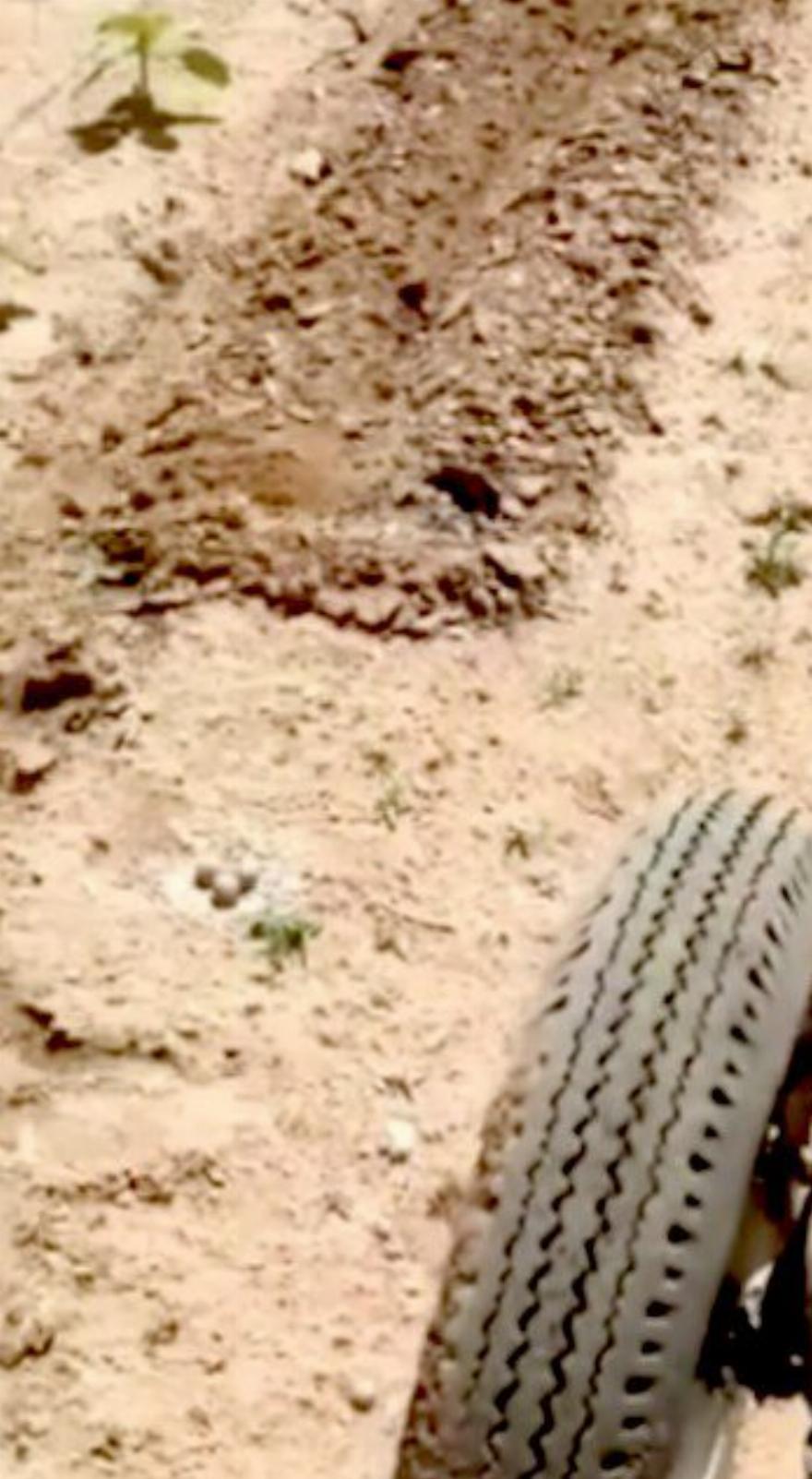 Στο βίντεο, το πουλί χτυπάει τα φτερά του καθώς περπατάει προς τον κινούμενο ελκυστήρα σε μια προσπάθεια να αποκρούσει το γιγαντιαίο μηχάνημα.