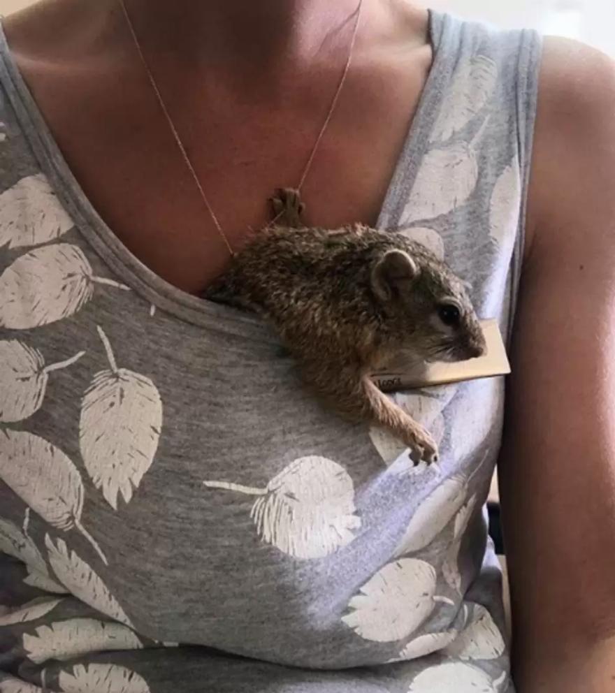 Η Serfontein προφανώς είχε μια ζωή με άλλες ευθύνες που δεν μπορούσε να εγκαταλείψει επειδή είχε φιλοξενήσει ένα μικρό σκίουρο – έτσι έφερε μαζί της και την Dingetjie. “Πήγαινε μαζί μου στη δουλειά κάθε μέρα για τους πρώτους τρεις μήνες”, είπε ο Serfontein. “Συνήθως την τάιζα όταν ξυπνούσα και μετά ετοιμαζόμουν και μετά έμπαινε στο κασκόλ μου, στο πουκάμισό μου ή οπουδήποτε ζεστό κοντά στο σώμα μου και ξεκινούσαμε για τη δουλειά”.
