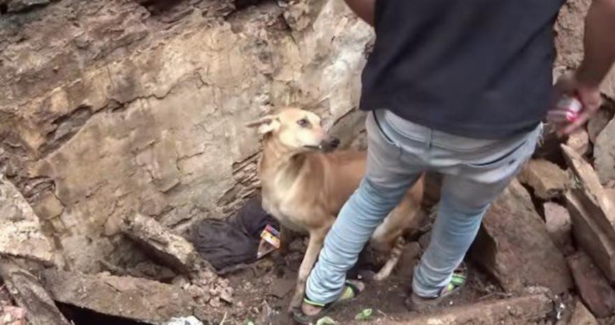 Παρόλο που φοβούνται ότι τα κουτάβια μπορεί να έχουν ήδη πεθάνει, η μητέρα σκύλα πρέπει να διαισθάνεται ότι είναι ακόμα ζωντανά, γιατί τους δείχνει πού πρέπει να κοιτάξουν. Δείχνει τη μουσούδα της προς το έδαφος, παροτρύνοντας τους διασώστες καθώς αρχίζουν να απομακρύνουν πέτρες και τούβλα.