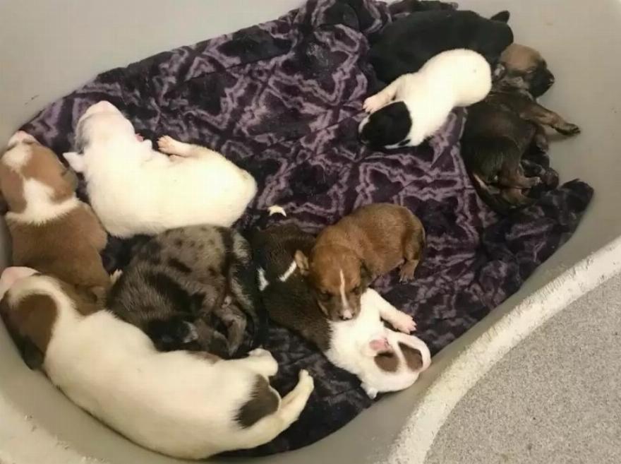 Η Melody είχε γεννήσει πρόσφατα 10 κουτάβια – μια αξιολάτρευτη γέννα που παραδόθηκε στο καταφύγιο μαζί της.