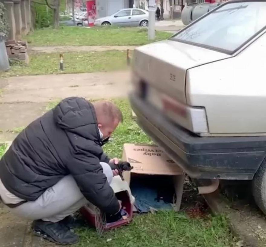 Ζει σε ένα κουτί κάτω από το αυτοκίνητο μαζί με τα κουτάβια της. Θα διαπιστώσετε ότι ο καιρός είναι κρύος και εκείνη κρατάει τα μωρά της για να τα κρατήσει όσο το δυνατόν πιο ζεστά. Ευτυχώς, ένας άντρας τα είδε και βάλθηκε να τα σώσει από τις άτυχες συνθήκες διαβίωσής τους. Δεν είναι εύκολο να πλησιάζεις για πρώτη φορά έναν σκύλο, αλλά εκείνος αφιέρωσε χρόνο για να τους δείξει ότι δεν ήθελε να τους κάνει κακό.