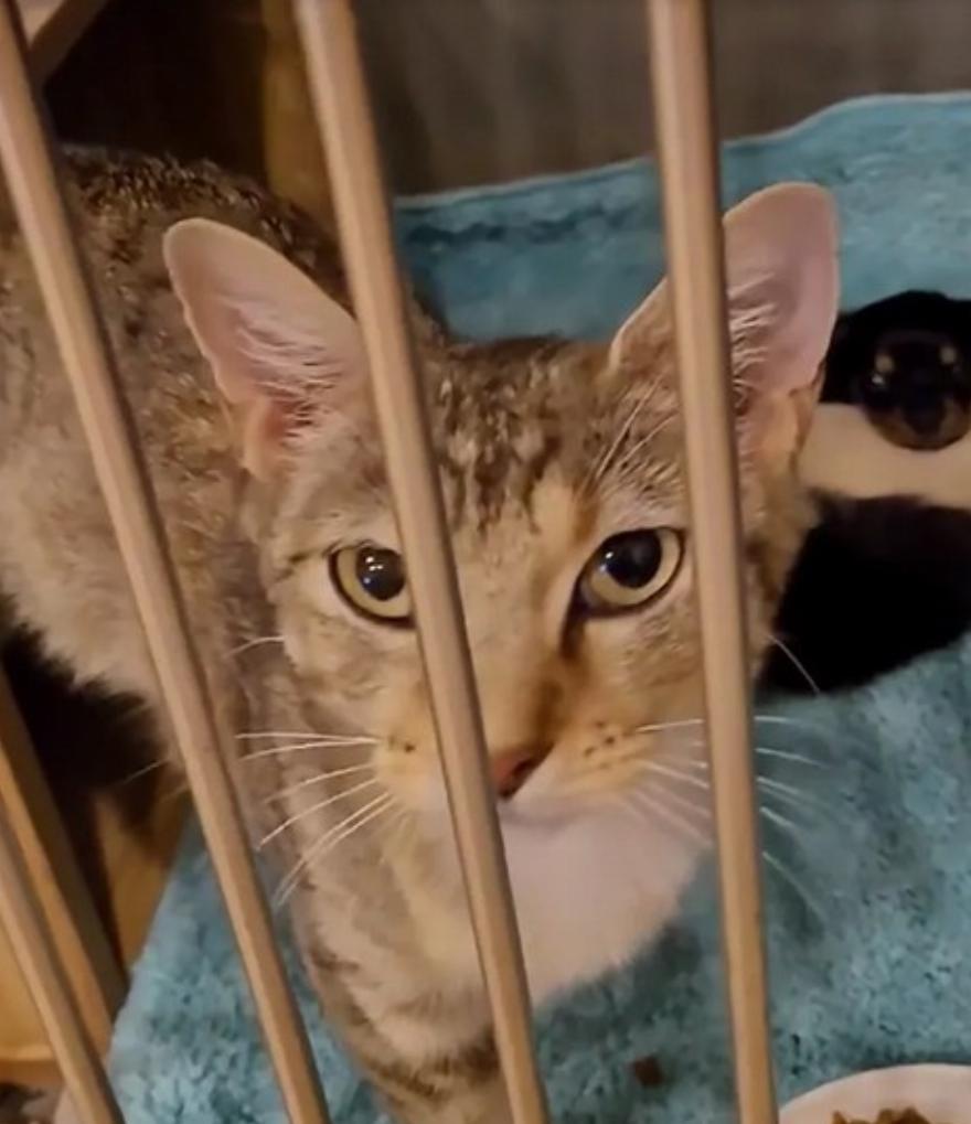 Καθώς το προσωπικό σκεφτόταν τι να κάνει με τα κουτάβια για να τους δώσει “τις καλύτερες δυνατές πιθανότητες” επιβίωσης, συνέβη ένα απρόοπτο της μοίρας. Σύμφωνα με την ανθρωπιστική οργάνωση, λίγο μετά το θάνατο της μητέρας σκύλου, οι τοπικοί υπεύθυνοι ελέγχου των ζώων έφεραν στο καταφύγιο μια μητέρα γάτα 8 μηνών, την Julie Newmar, με το γατάκι της, ηλικίας μιας εβδομάδας, την Eartha Kitt.