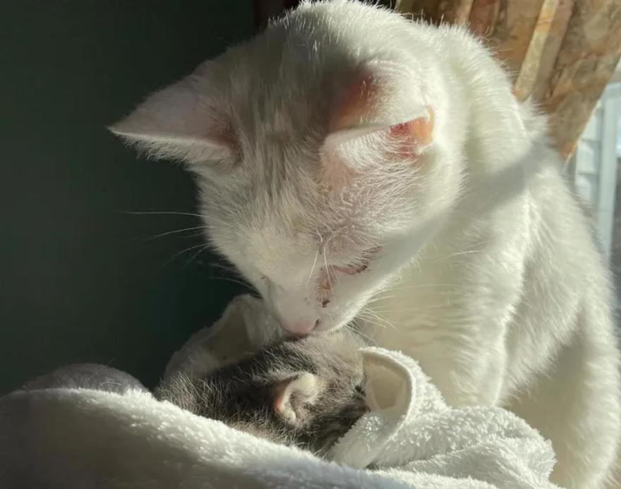 “Δεν χρειάζεται μια γάτα που είναι μαμά για να βοηθάει στην ανατροφή τους, χρειάζεται απλώς μια γάτα με καταπληκτική προσωπικότητα και υπομονή που να απολαμβάνει την παρουσία μικρών γατιών”, δήλωσε η Ellen.