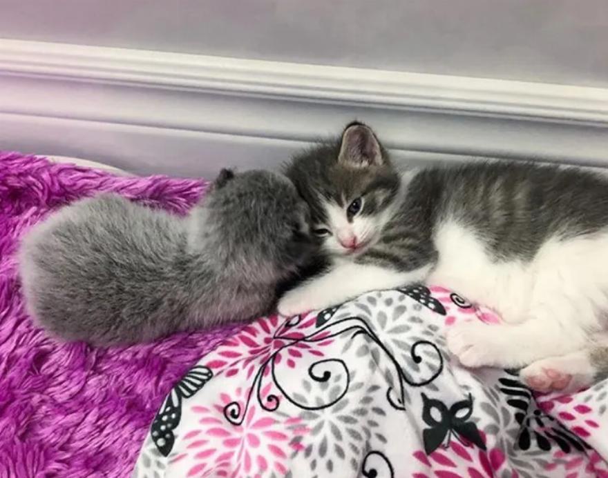 Η Mellissa της Tiny but Mighty Kitten Rescue (στην Κορνουάλη, Καναδάς) ανέλαβε μια έγκυο αδέσποτη πριν από δύο μήνες. Λίγες εβδομάδες μετά την ανάδοχη φροντίδα, η γάτα γέννησε πανέμορφα γατάκια.