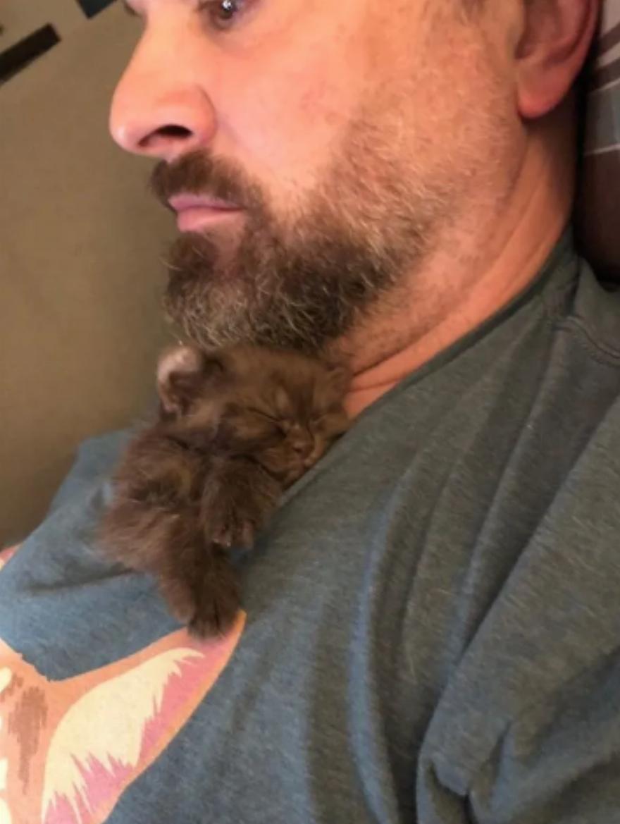 Η Mel Lamprey και ο σύζυγός της Zane, εθελοντές της διάσωσης, ανέλαβαν να βοηθήσουν. Το μικροσκοπικό γατάκι ήταν χαδιάρικο και ζητούσε στοργή.