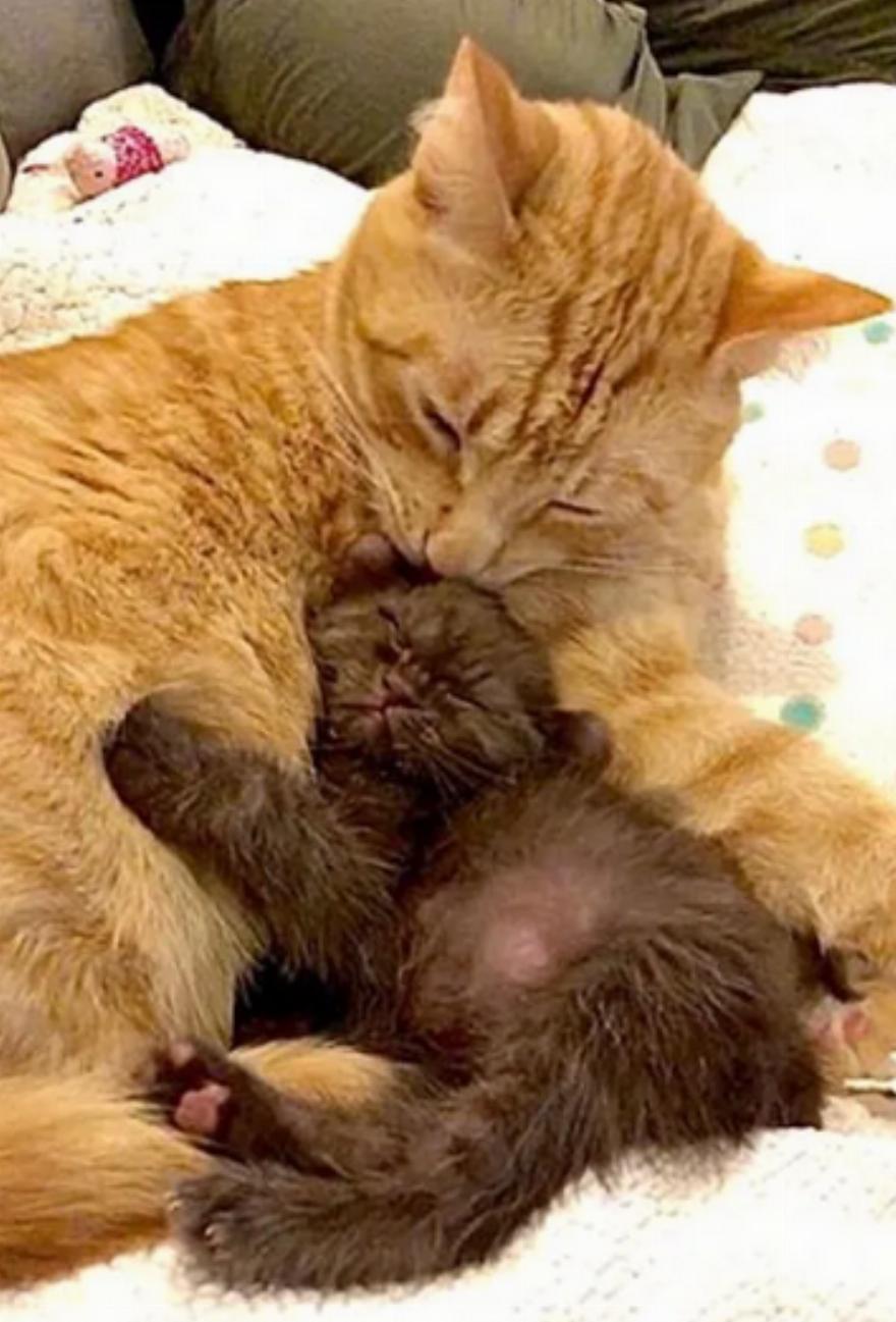 Μετά από κάθε γεύμα, επιμένει να το παίρνουν αγκαλιές πριν κοιμηθεί γουργουρίζοντας στην αγκαλιά τους.