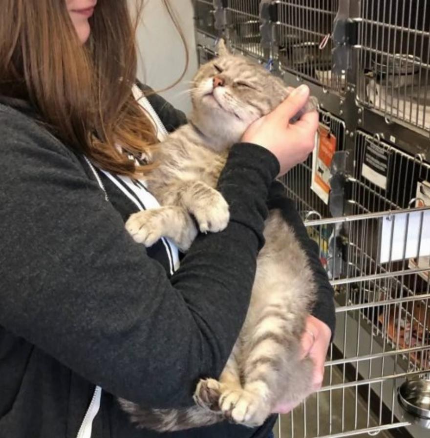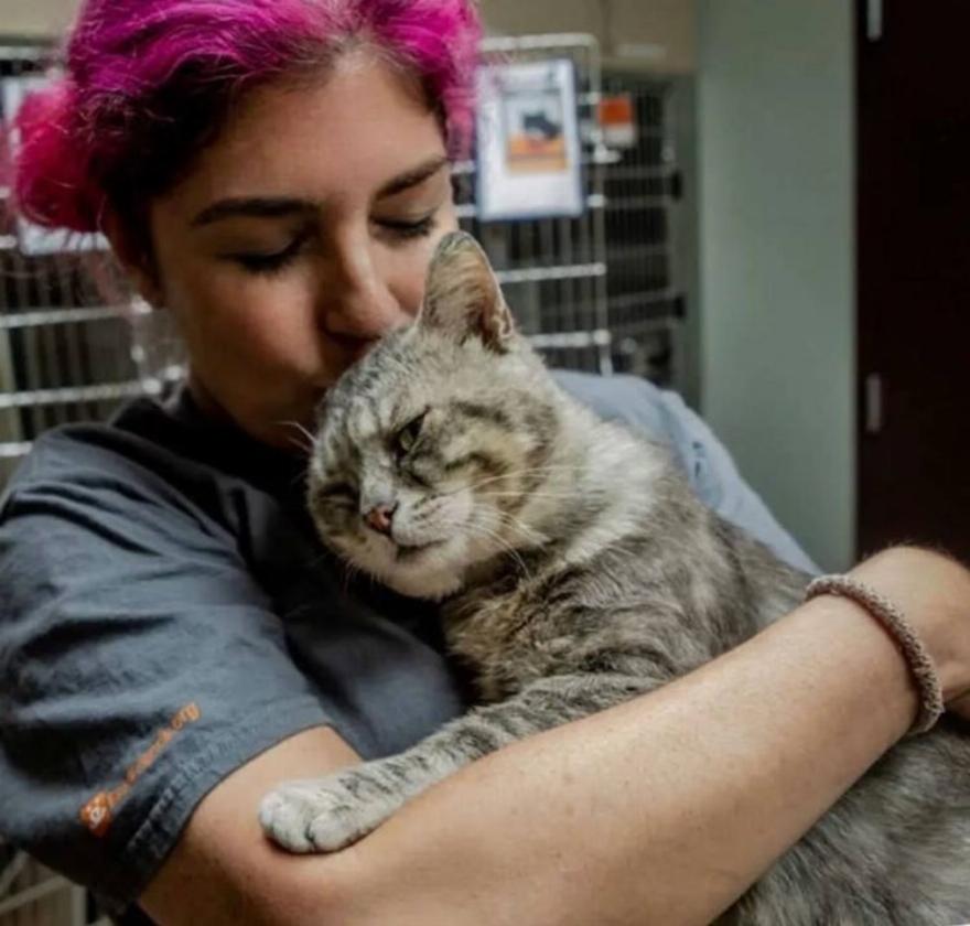 Η νέα ανάδοχη μαμά γρήγορα παρατηρεί ότι ο γάτος είναι στοργικός και κάθε φορά που η Σαμάνθα του άνοιγε το κυνοκομείο, εκείνος αγκαλιάζεται προσεκτικά κοντά στο πρόσωπο της μαμάς της.