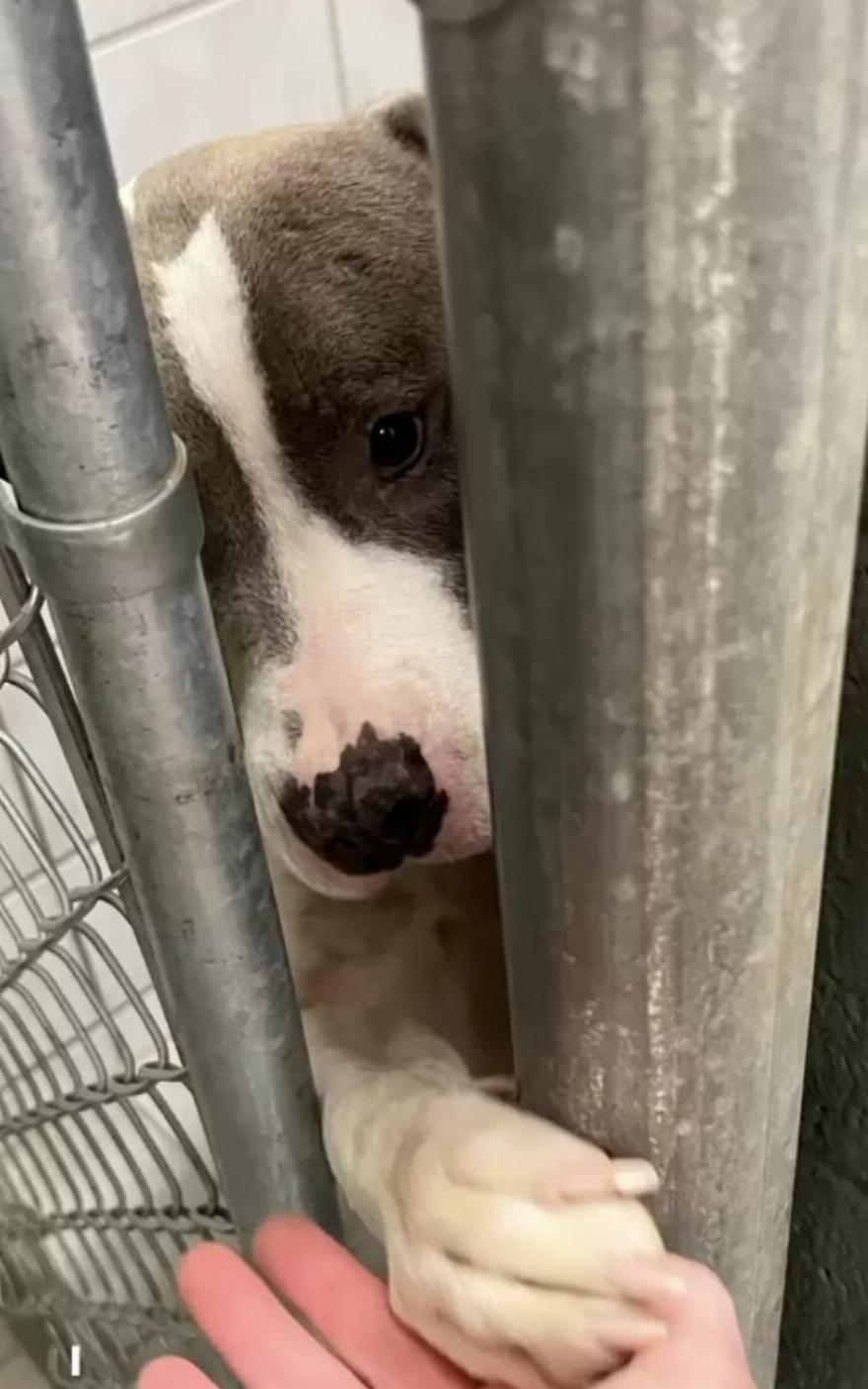 Τώρα που περιμένει ένα παντοτινό σπίτι σε ένα νοσοκομείο ζώων, δεν μπορεί παρά να απλώσει το πόδι της μέσα από το κλουβί της για να κρατήσει το χέρι σε όποιον περνάει από εκεί.