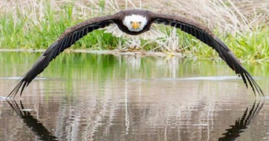 Η μοναδική στιγμή στη ζωή του φωτογράφου Στιβ Μπίρο, όταν κατάφερε να απαθανατίσει στο φακό μια μοναδική φωτογραφία ενός αετού που πετούσε πάνω από μια λίμνη.