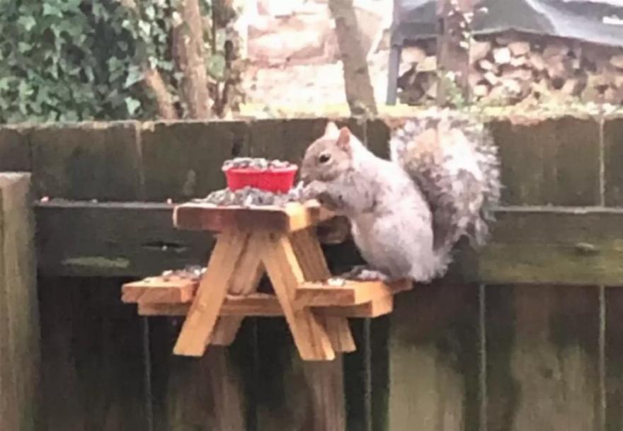 Οι σκίουροι, που συχνά επισκέπτονται το τραπέζι δύο φορές την ημέρα, δεν έχουν ακόμη αφήσει φιλοδώρημα μετά το γεύμα τους – αλλά η προθυμία τους να χρησιμοποιήσουν το τραπέζι υποδηλώνει ότι είναι μια ευπρόσδεκτη προσθήκη στη ρουτίνα των γευμάτων τους.