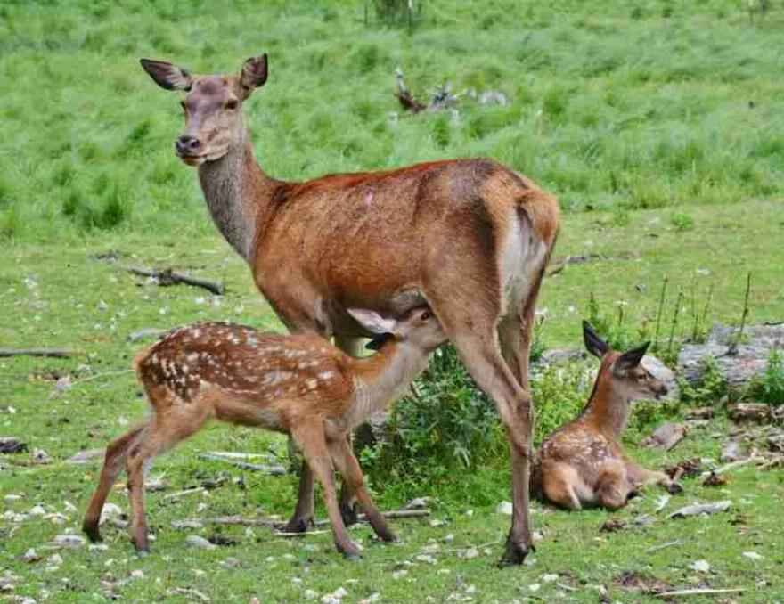 Το θηλυκό ελάφι δεν έχει κέρατα και γεννάει την άνοιξη, συνήθως ένα μικρό. Το νεαρό ελάφι φέρει άσπρες βούλες, οι οποίες χάνονται όσο μεγαλώνει.