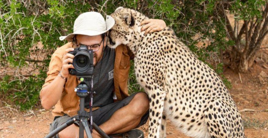 Νότια Αφρική — Ο Sasan Amir, ένας 27χρονος κινηματογραφιστής και φωτογράφος, έζησε τη στιγμή της ζωής του όταν ένα τσιτάχ τον αγκάλιασε ενώ τραβούσε κάποιες φωτογραφίες σε ένα καταφύγιο άγριας ζωής.