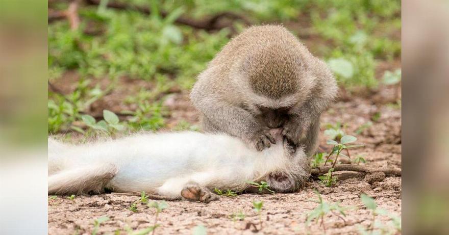 Στη συνέχεια είδε τον πίθηκο να χορηγεί καρδιοαναπνευστική αναζωογόνηση σε άλλον. Η φωτογραφία, που τραβήχτηκε στο Gaborone Game Reserve στη Μποτσουάνα, έγινε viral και πολλοί άνθρωποι σχολίασαν πόσο υπέροχη είναι.