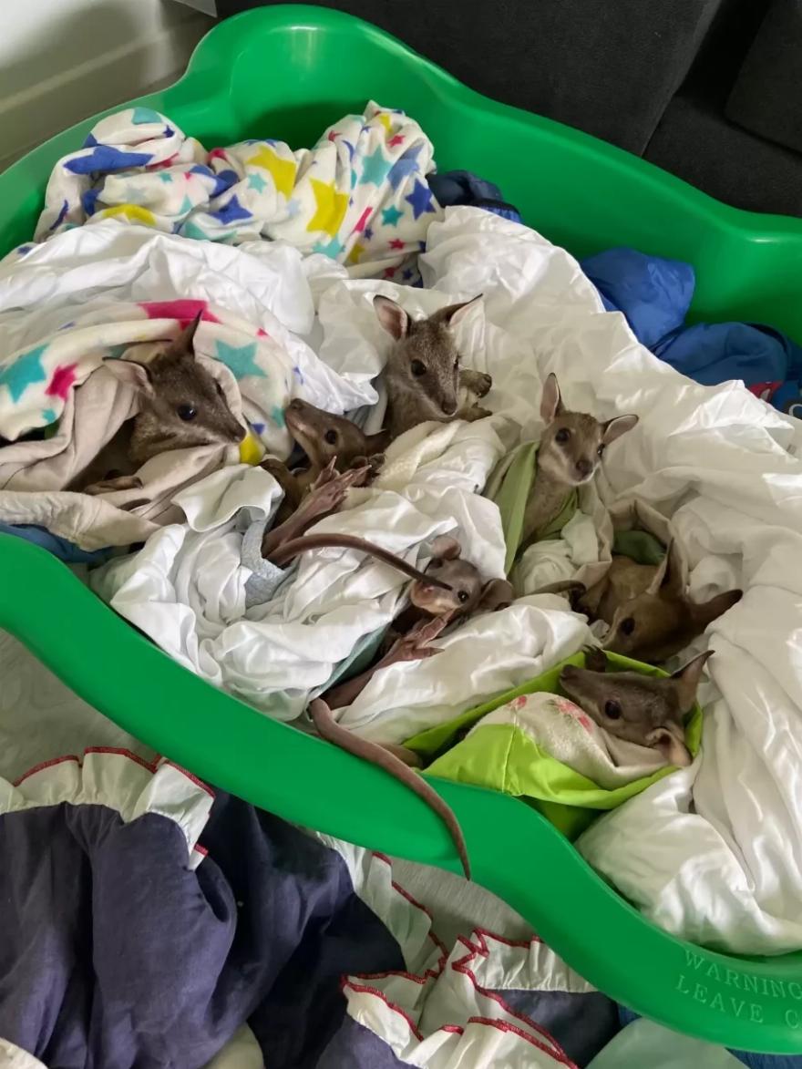 Οι διασώστες των wallabies ήθελαν να διασφαλίσουν ότι θα ήταν όσο το δυνατόν πιο άνετα και χαλαρά, καθώς θα αναρρώνουν από την απώλεια των μαμάδων και των σπιτιών τους στις πυρκαγιές. Έστησαν το πιο άνετο, χαριτωμένο κρεβάτι, φτιαγμένο από μια παιδική πισίνα και πολλές-πολλές κουβέρτες, και τα επτά μωρά το πήραν αμέσως, τόσο χαρούμενα που επιτέλους είχαν ένα ασφαλές μέρος για να χαλαρώσουν.