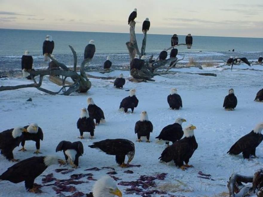 Ο μεγαλοπρεπής φαλακρός αετός είναι το εθνικό πουλί των Ηνωμένων Πολιτειών, αλλά οι περισσότεροι Αμερικανοί είναι τυχεροί αν δουν ένα τέτοιο πτηνό κατά τη διάρκεια της ζωής τους. Εκτός αν ζουν στην πόλη Ουναλάσκα της Αλάσκα, όπου είναι τόσο συνηθισμένοι, όσο και τα περιστέρια σε άλλους ανθρώπινους οικισμούς.