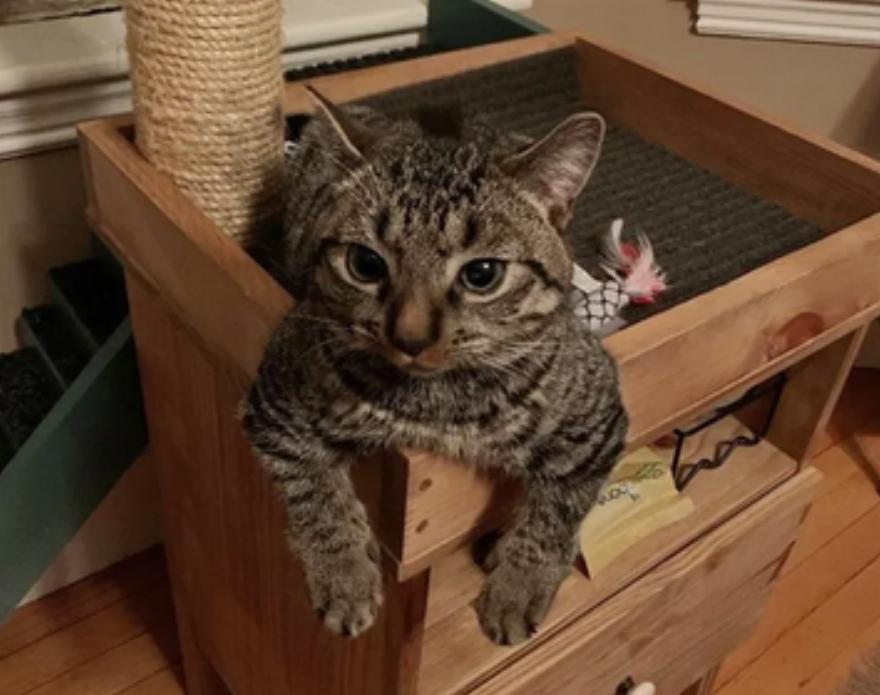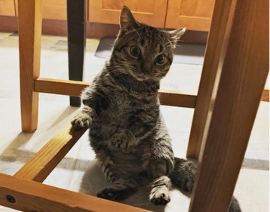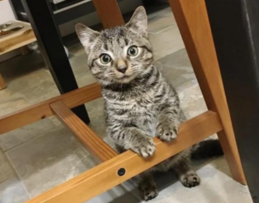 Το γατάκι λατρεύει να σκαρφαλώνει στο δέντρο γάτας, παρόλο που δεν είναι επιδέξιος άλτης. Η ανάδοχη ιδιοκτήτριά του του έχει κατασκευάσει μια μικρή σκάλα, ώστε να μπορεί να ανεβαίνει με ευκολία σε ψηλότερα σημεία.